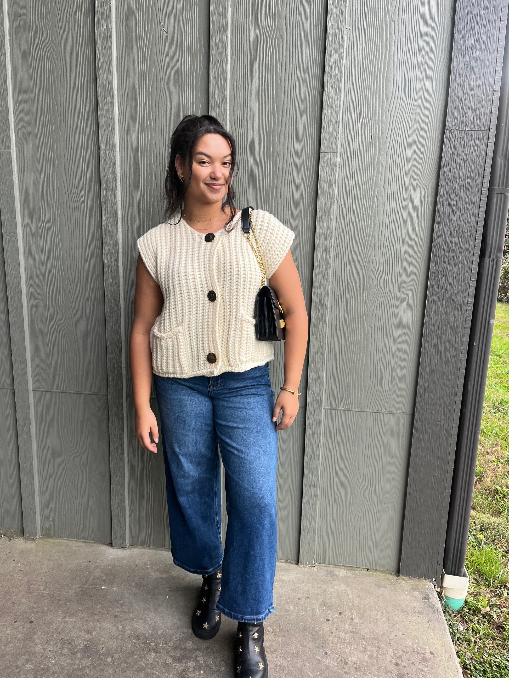 Such a staple! I love the gold button detail. This would be so cute paired with a statement turtleneck underneath! True to size.